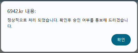가입 정보를 모두 기입하신 후 '확인'을 클릭하면 아래와 같은 알람창이 표시됩니다.